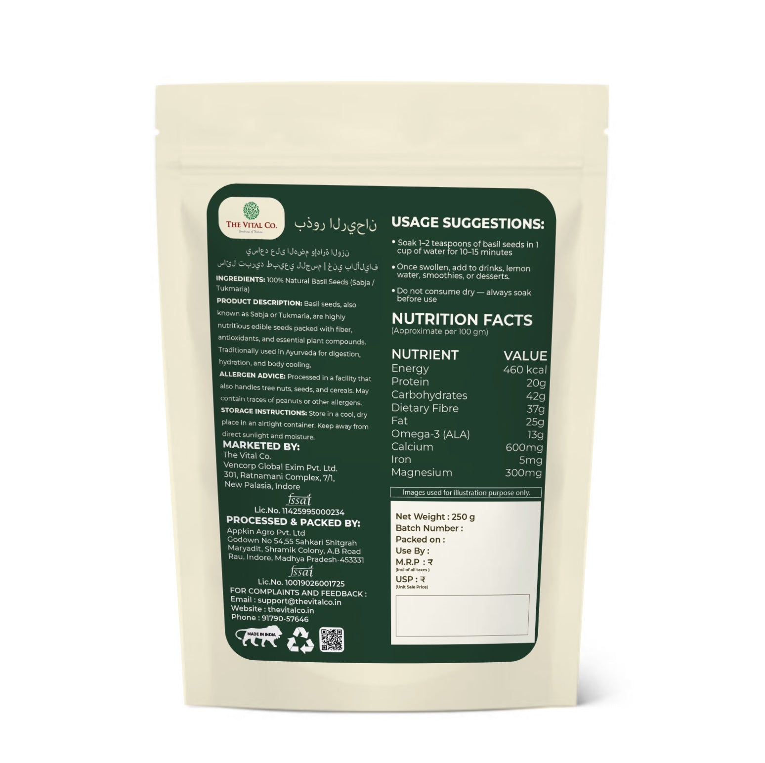 The Vital Co. basil seeds are packed in a hygienic manner in order to guarantee the long shelf life and also the quality of the product and therefore becomes a good option to be consumed daily.