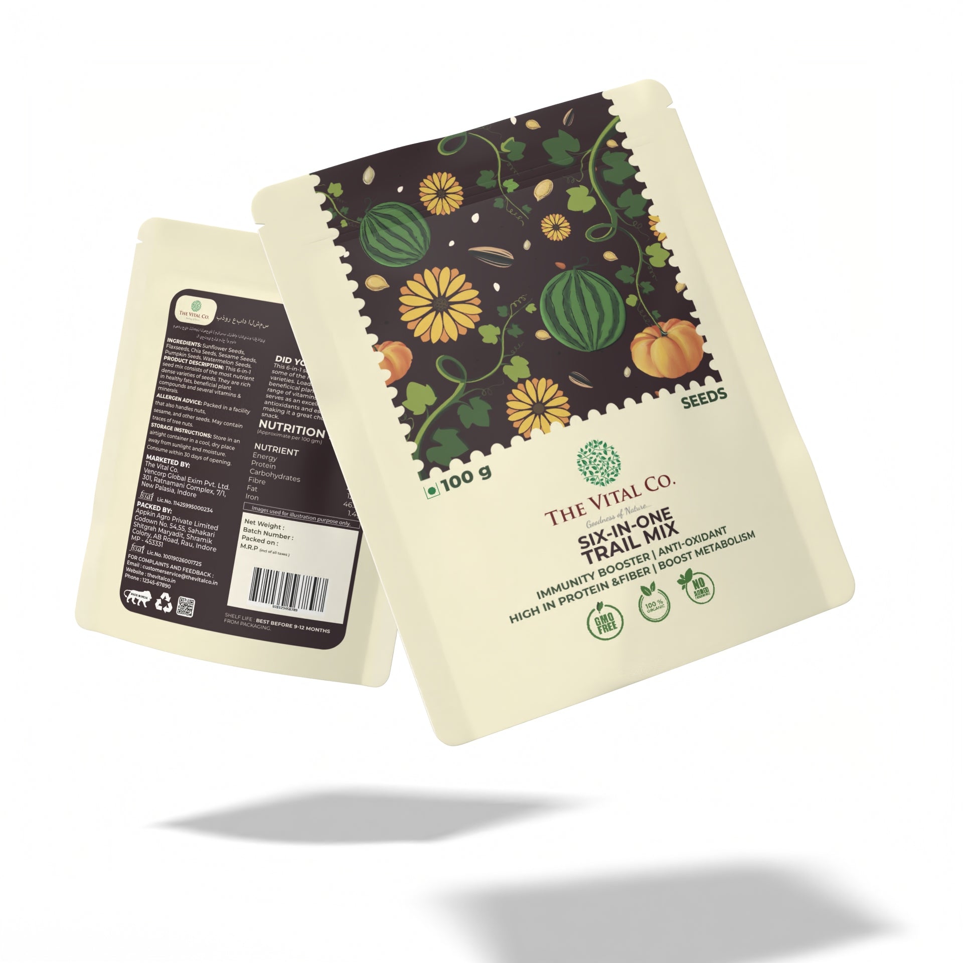 Our Six-in-One Trail Mix is a nutrient-dense, energizing snack blend designed to keep you fueled and satisfied throughout the day. With a wholesome mix of roasted Flax Seeds, Chia Seeds, White Sesame Seeds, Sunflower Seeds, Pumpkin Seeds, and Watermelon Seeds, each bite delivers a crunchy, satisfying combination of protein, healthy fats, fiber, and essential vitamins and minerals. A pinch of sea salt enhances the natural flavors, making this the perfect balance of savoury goodness.