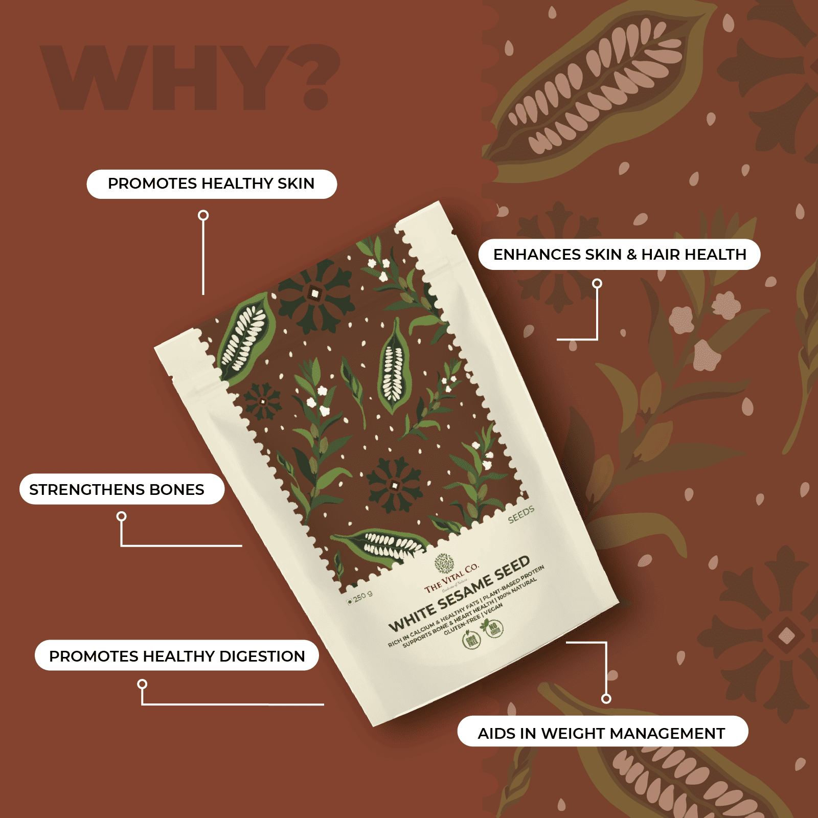 The Vital Co is focused on quality, purity, and authenticity. Our white sesame seeds are well sourced on reputable farms and have minimum processing so as to retain their natural goodness.