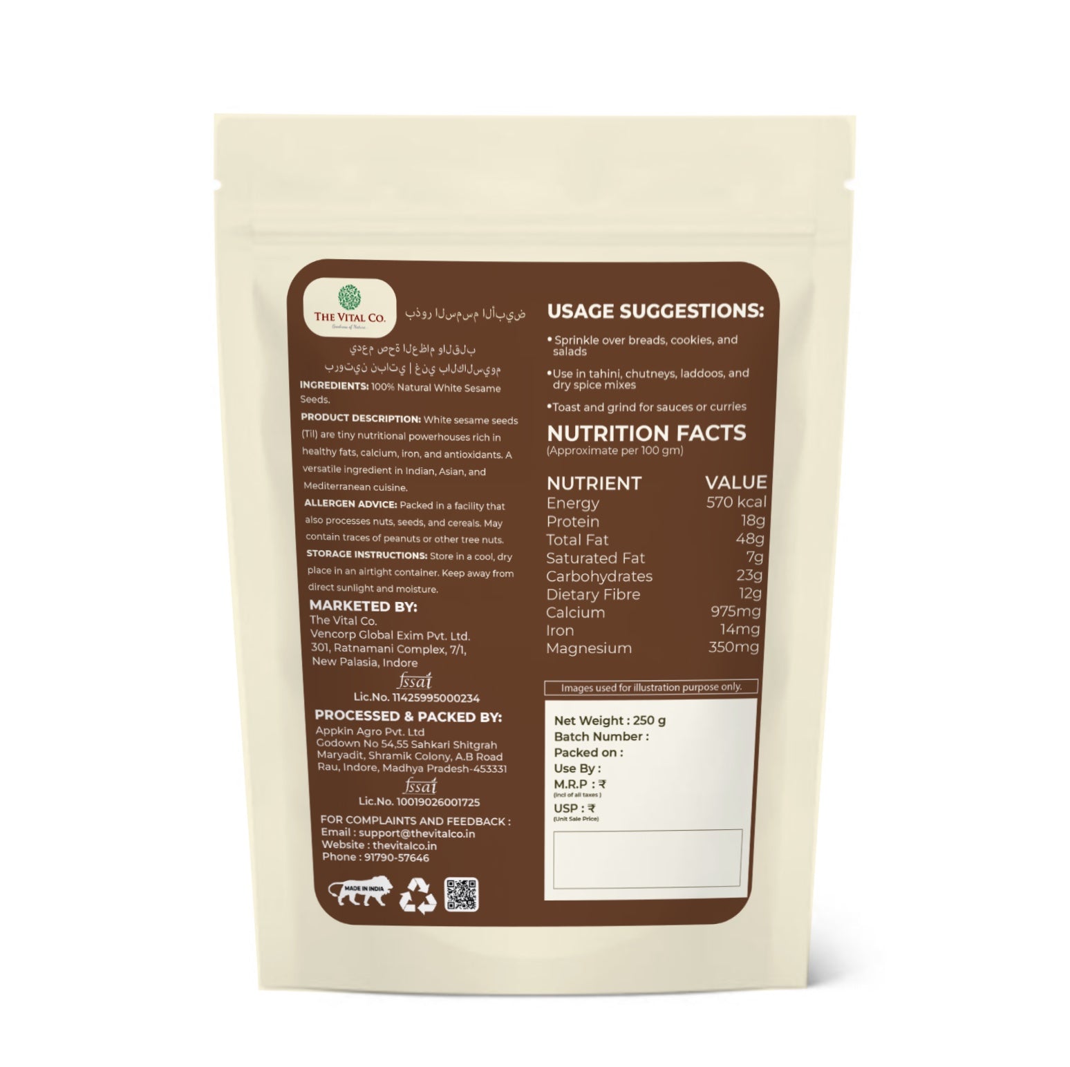 The Vital Co White Sesame Seeds are: